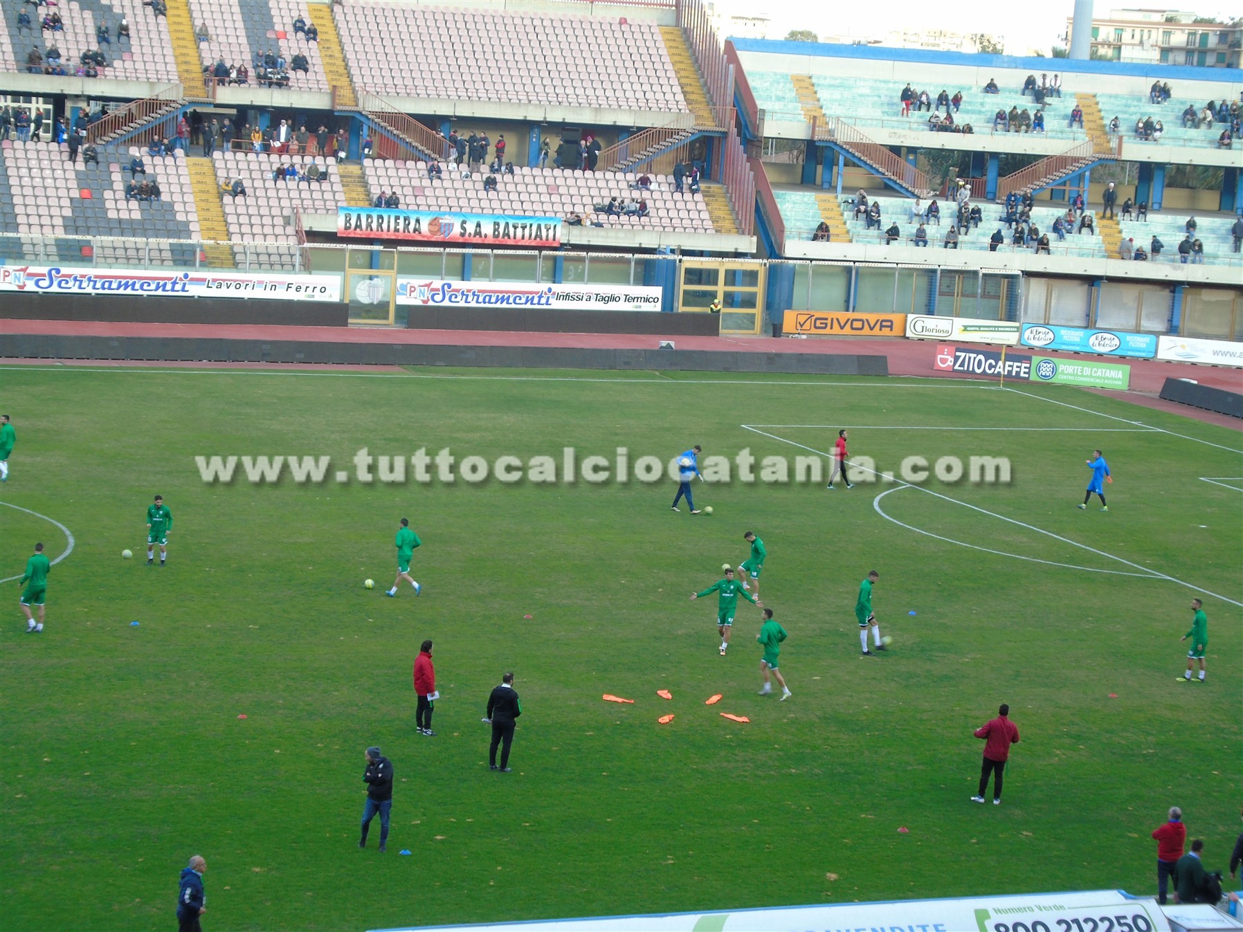 Alcuni scatti fotografici realizzati da TuttoCalcioCatania.com dalla Tribuna Stampa dello stadio “Angelo Massimino” nel corso del riscaldamento pre-gara di Catania-Monopoli, impegno valido per la 20/a giornata del girone C di Serie C: