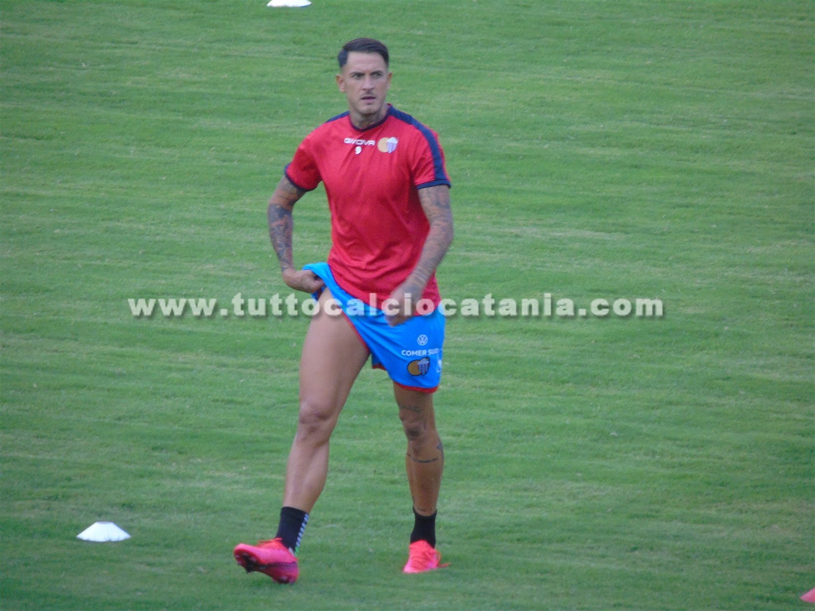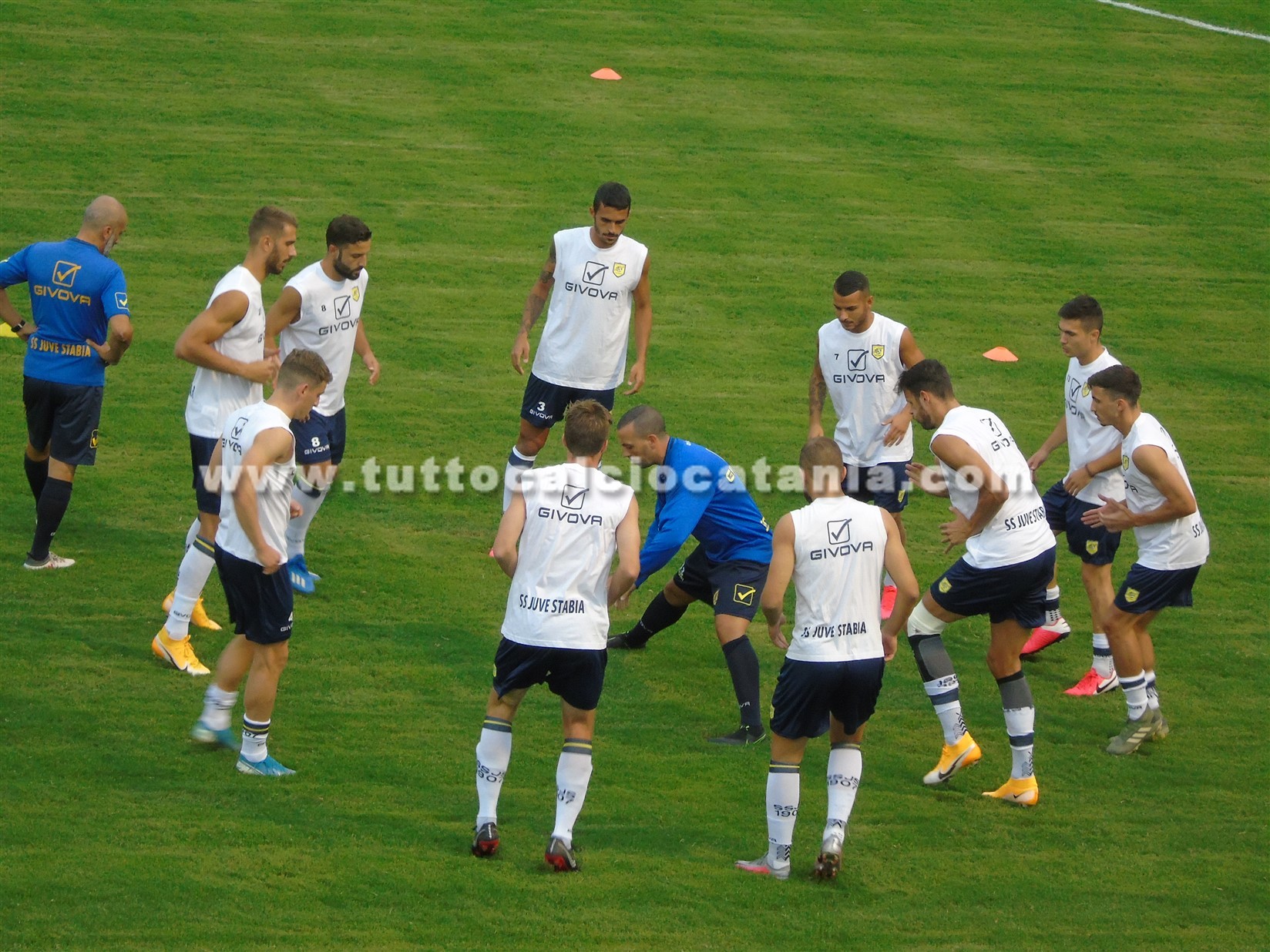 Alcuni scatti fotografici realizzati dalla Tribuna Stampa dello stadio “Angelino Nobile-Sicula Trasporti Stadium”, nel corso del riscaldamento pre-gara di Catania-Juve Stabia, match valido per la seconda giornata del girone C di Serie C: