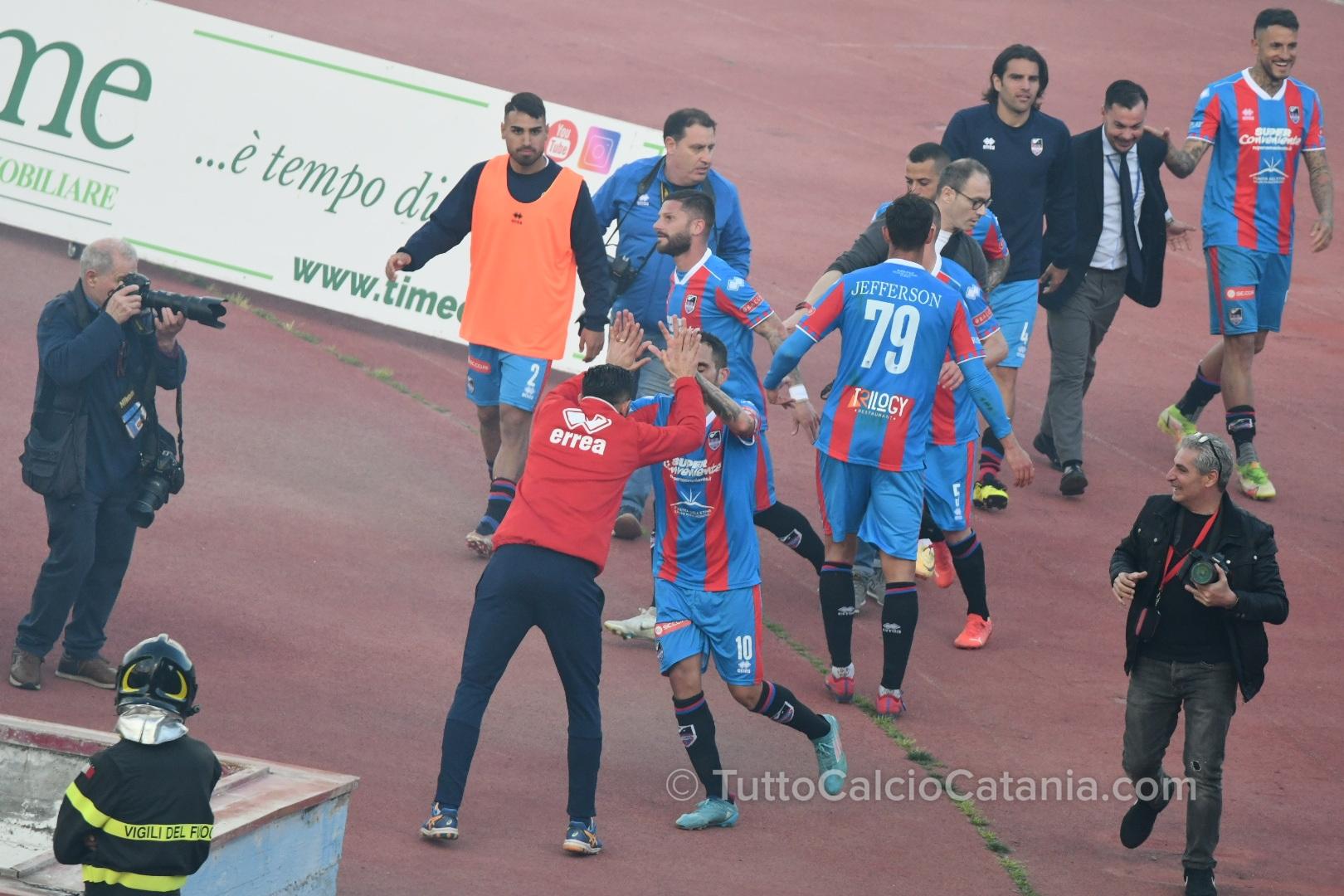 Proprio Lodi e Giovinco sono stati i principali protagonisti dell’incontro. Gli episodi decisivi portano la loro firma: la conclusione negli istanti finali del recupero di Giovinco ha propiziato il rigore poi trasformato impeccabilmente dallo stesso Lodi. Il boato di un “Massimino” elettrizzante, la gioia incontenibile dei rossazzurri e la delusione stampata nel volto degli avversari fotografa l’atto finale di una sfida vinta all’ultimo respiro dal Catania, prima della grande festa per il ritorno nel professionismo.