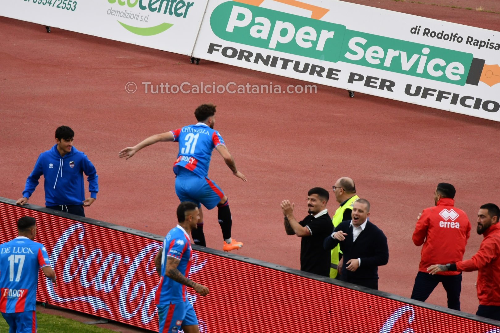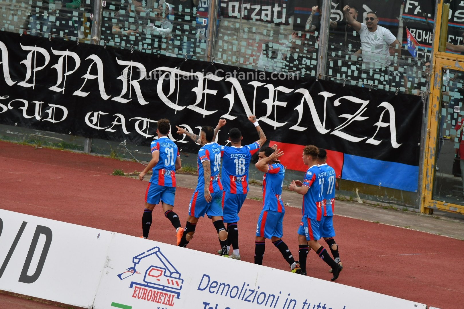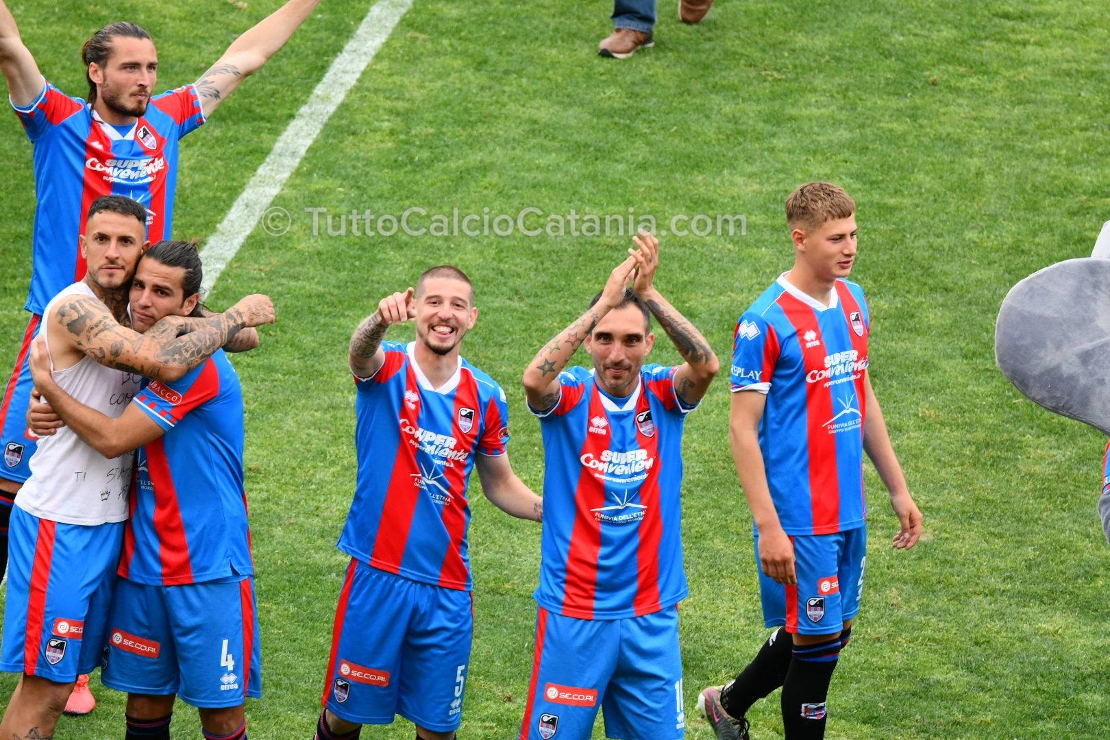 Nonostante il grande obiettivo stagionale sia ormai stato raggiunto, mister Ferraro ed i suoi ragazzi non mollano la presa. Nella ventinovesima giornata di Serie D la truppa rossazzurra batte, con un gol per tempo, il Lamezia Terme e festeggia così nel migliore dei modi la matematica promozione in Serie C conseguita due domeniche orsono. Buon primo tempo quello disputato dal team rossazzurro con un Sarao particolarmente ispirato ed abile prima nel procurarsi il calcio di rigore, fallito da Lodi, e poi nel prolungare provvidenzialmente la sfera per il gol del vantaggio di Chiarella. Nel secondo tempo invece la squadra etnea, accontentandosi del risultato e volendo gestire la partita, subisce un po’ la voglia di rivalsa degli ospiti prima del punto esclamativo finale siglato da Russotto a tempo praticamente scaduto.