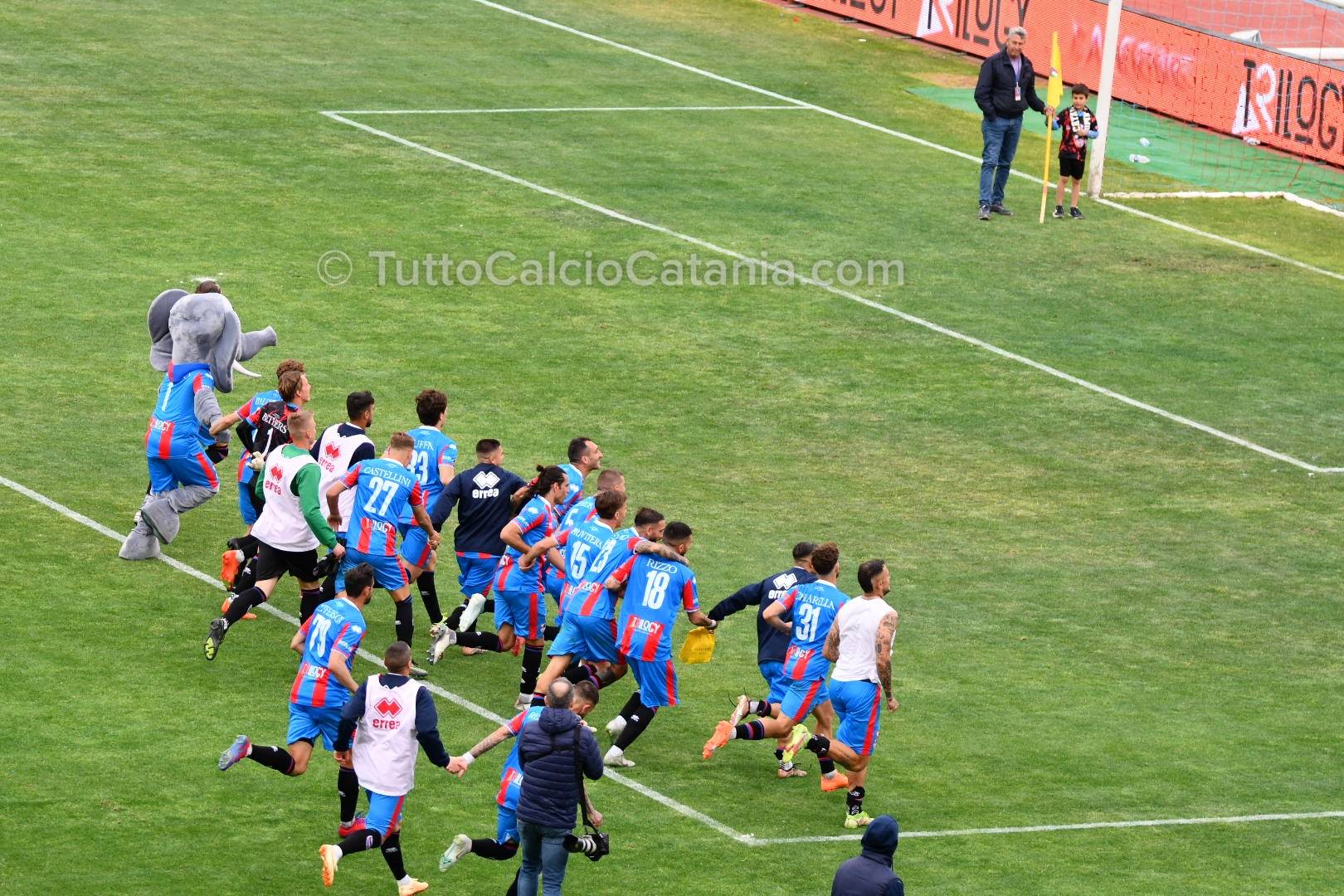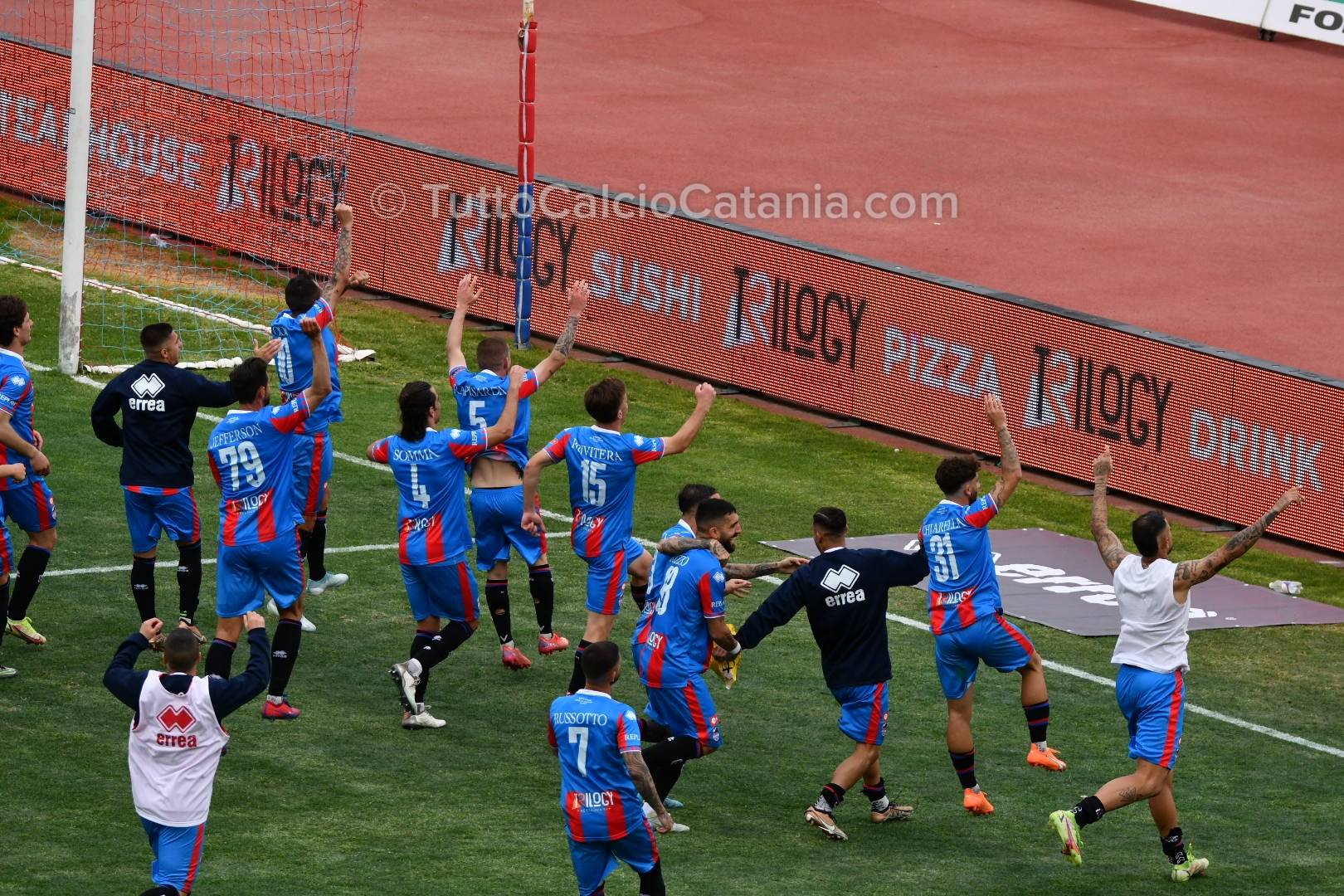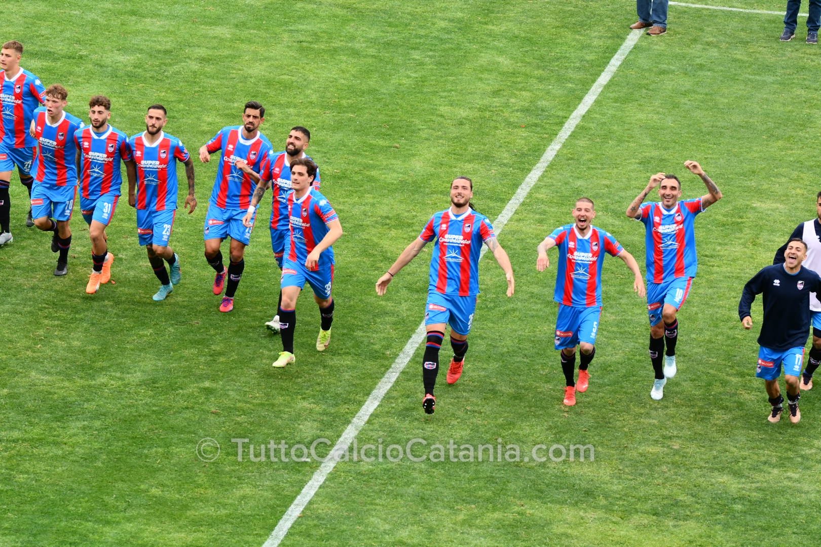 Il pericolo scampato risveglia il Catania grazie alla verve di Marco Palermo, il quale, dopo aver superato due avversari con tecnica e velocità, mette in mezzo la sfera per l’accorrente Jefferson che trova però la pronta risposta di Mataloni (75’). Nel finale mister Ferraro chiama in causa Buffa e Privitera (canterano rossazzurro classe ‘05) al posto di Chiarella e Baldassar. Ad una manciata di secondi dal novantesimo Jefferson tenta la volée di controbalzo colpendo però con troppa forza il pallone. Sul capovolgimento di fronte Alma, di testa, non inquadra lo specchio della porta (90’). In pieno recupero il Catania chiude la sfida. Lancio lungo di Bethers che innesca Russotto il quale, incuneatosi in area con i giri giusti, batte Mataloni con un tiro potente e preciso sul secondo palo (90’+5). Al fischio finale esplode di gioia tutto lo stadio “Massimino” che celebra con tutti gli onori possibile un gruppo entrato già nella storia del Catania e nel cuore di tutti i tifosi rossazzurri. Prossima sfida in programma Giovedì 6 Aprile (ore 15:00) contro l’Acireale.