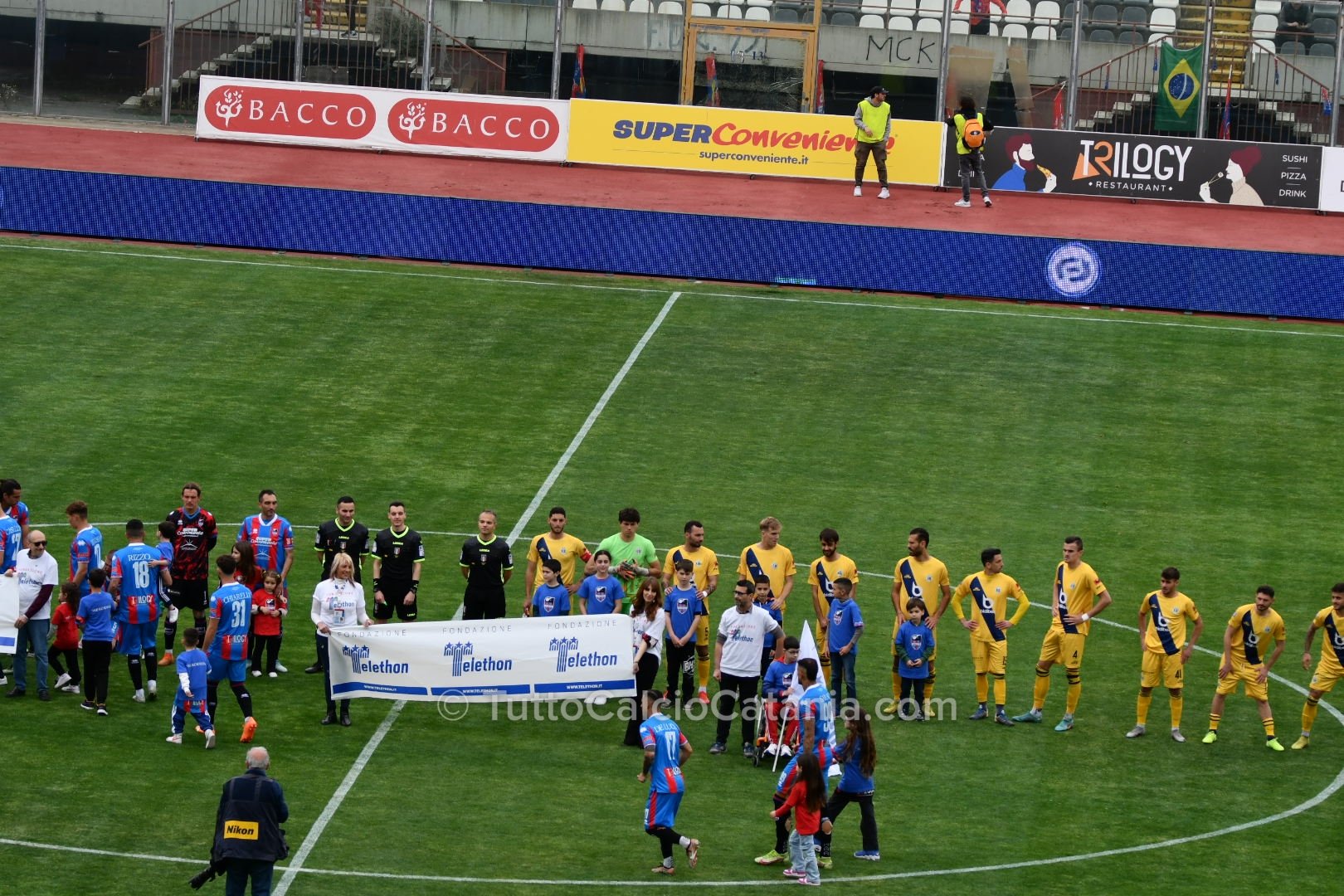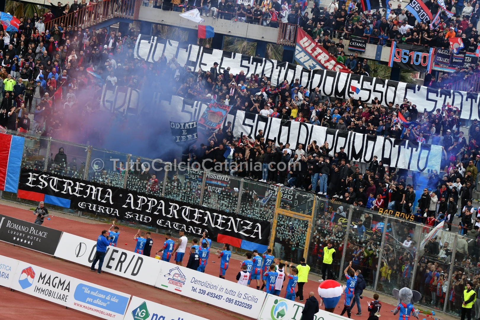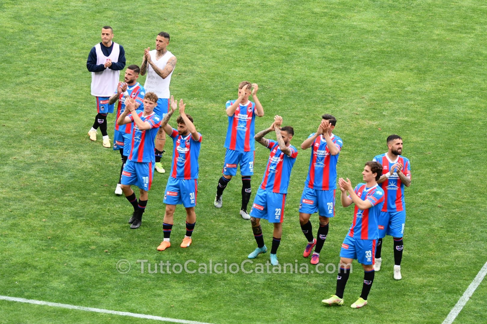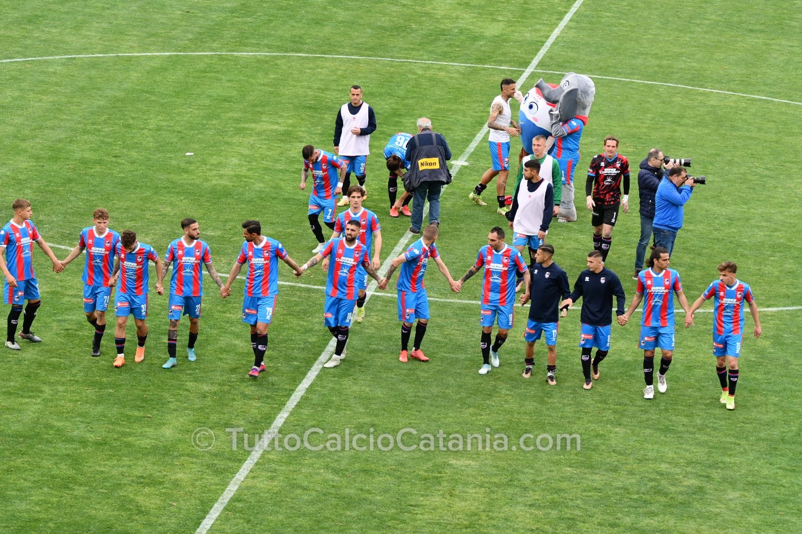 Il pericolo scampato risveglia il Catania grazie alla verve di Marco Palermo, il quale, dopo aver superato due avversari con tecnica e velocità, mette in mezzo la sfera per l’accorrente Jefferson che trova però la pronta risposta di Mataloni (75’). Nel finale mister Ferraro chiama in causa Buffa e Privitera (canterano rossazzurro classe ‘05) al posto di Chiarella e Baldassar. Ad una manciata di secondi dal novantesimo Jefferson tenta la volée di controbalzo colpendo però con troppa forza il pallone. Sul capovolgimento di fronte Alma, di testa, non inquadra lo specchio della porta (90’). In pieno recupero il Catania chiude la sfida. Lancio lungo di Bethers che innesca Russotto il quale, incuneatosi in area con i giri giusti, batte Mataloni con un tiro potente e preciso sul secondo palo (90’+5). Al fischio finale esplode di gioia tutto lo stadio “Massimino” che celebra con tutti gli onori possibile un gruppo entrato già nella storia del Catania e nel cuore di tutti i tifosi rossazzurri. Prossima sfida in programma Giovedì 6 Aprile (ore 15:00) contro l’Acireale.