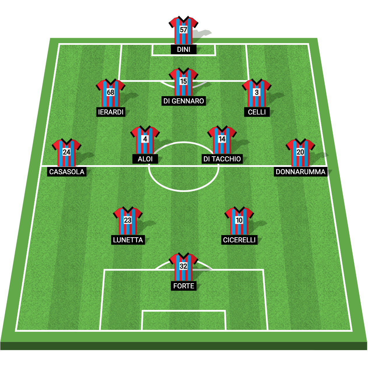 In occasione del match dello stadio “Angelo Massimino” contro il Benevento, mister Domenico Toscano farebbe bene a schierare il seguente undici rossazzurro secondo la maggioranza dei votanti al nostro consueto sondaggio pre partita: Dini a difesa dei pali; Ierardi, Di Gennaro, Celli a completamento del reparto arretrato; Casasola, Aloi, Di Tacchio e Donnarumma a centrocampo con Lunetta e Cicerelli alle spalle di Forte. Rispetto alla precedente gara disputata in trasferta al cospetto della Salernitana, i tifosi sarebbero dunque favorevoli ad inserire Aloi dal 1′.